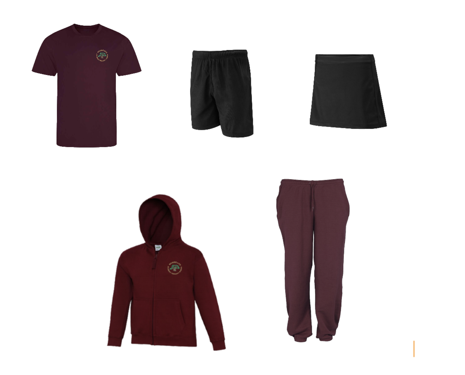 Old style PE kit (white t-shirt and burgundy shorts) can continue to be worn until they need to be replaced